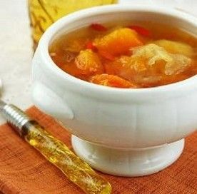 6.大火燒開后轉小火煲1-2小時,根據自家火力來定。以熬掉總水量的1/3即可。熬過1小時的時候可以放入枸杞。熬好后再放入冰糖