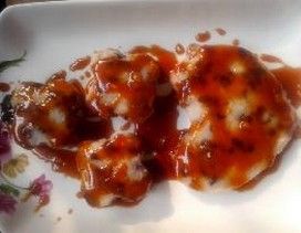 4、熱鍋加少許的水,把少許的紅糖熬制成糖漿(熬制糖時,火要小免得糖糊了),淋在山藥上即可。