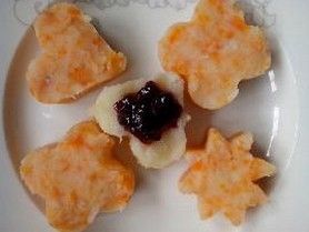 2、再壓成泥狀,壓的時候加些白糖,再用模具倒成各種形狀即可。吃的時候也可以加些果醬類。