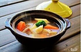 6.羊排煮到一定時候后,將山藥塊、胡蘿卜塊放進去煮10-15分鐘