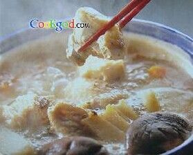 3、鍋中裝七分滿水(或昆布柴魚高湯),放入土雞塊、山藥塊,以大火燉煮至滾,撈除油脂浮沫,放入其他蔬菜,轉中火再煮約l小時,加1大匙鹽,即可。