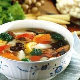 白山藥鮮蔬湯做法介紹 根據(jù)中國傳統(tǒng)食療說法,五色入五臟。這道素湯中用到了:青(青花菜)、赤(胡蘿卜)、黃(玉米)、白(山藥)和黑(黑木耳),稱得上五色俱全,可以全方位地增進健康。