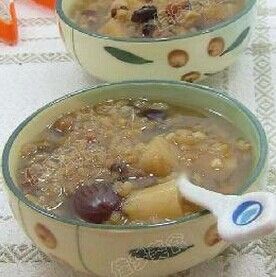 大米50克,糯米50克,香米50克,綠豆20克,紅小豆20克,高粱米20克,棗50克,葡萄干30克,山藥150克,水2000克