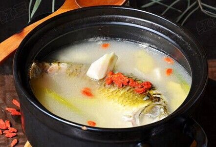 3.鯽魚肉嫩味鮮,可做粥、做湯、做菜、做小吃等。尤其適于做湯,鯽魚湯不但味香湯鮮,而且具有較強的滋補作用,非常適合中老年人和病后虛弱者食用,也特別適合產婦食用。